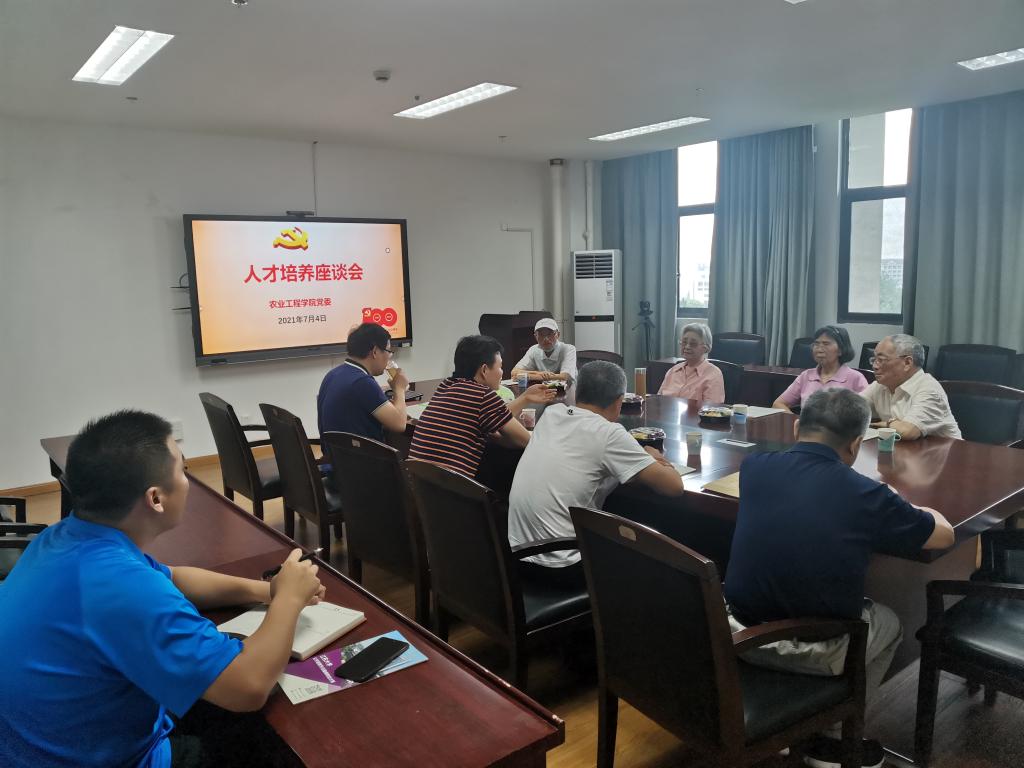 7月4日,黑料网 党委召开人才培养工作座谈会。学院邀请了退休老教师李国文、陈嘉真、陈翠英、王光亮参加座谈。黑料网 副院长黄文岳、农机系系主任杨启志,农机系路欣、刘玉成老师参加了座谈会。会议由黑料网 党委书记金玉成主持。